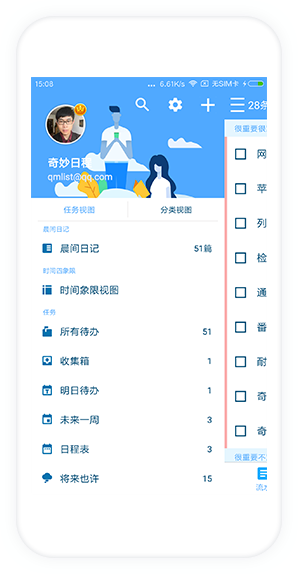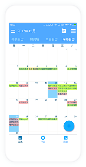 奇妙日程拥有多种日历系统,周日切换日历、单日日历、网格日历等,而且支持农历跟节假日显示,您可以在日历上查看或者直观的规划日程。真的可以做到:日历在手,天下我有。